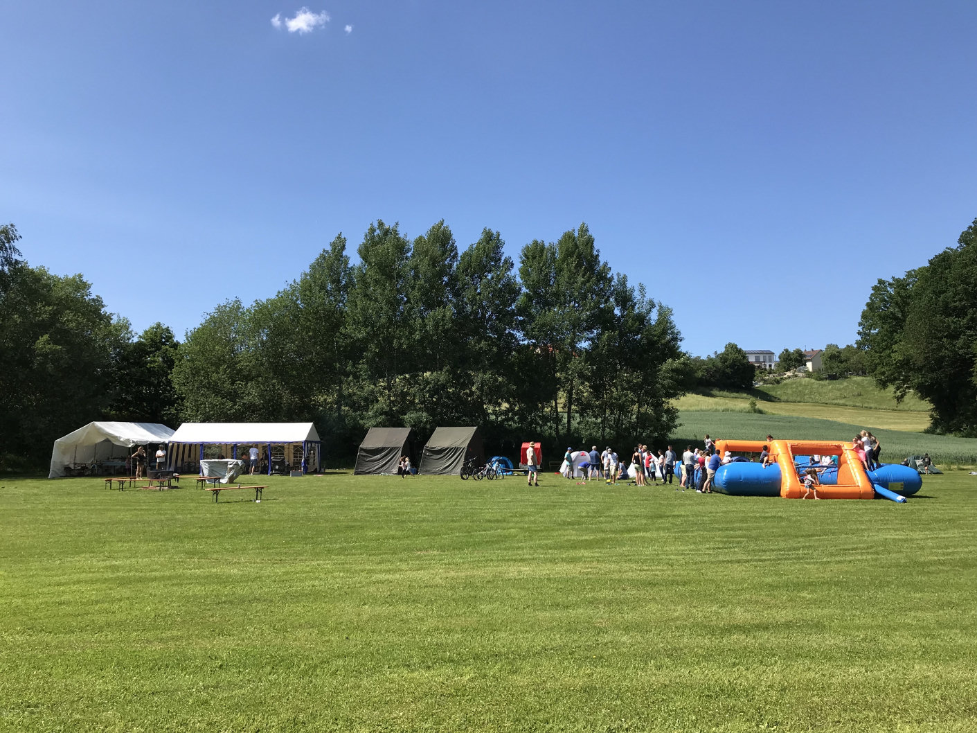 Mittlerweile traditionell veranstaltete die Feuerwehr Oberwittelsbach am vergangenen Pfingstswochenende, bei bestem Wetter, ihr 4. Familienfest im Aichacher Ortsteil. Neben der bestens organisierten Verpflegung wurde für die mehr als 120 Anwesenden viel geboten. In unterschiedlichen Teams konnten Jung und Alt im Lebend-Kicker gegeneinander antreten oder sich zu zweit beim Feuerwehrparkur mit Kübelspritze messen. Nach dem gemeinsamen Abendessen wurde eine Fackelwanderung mit allen Kindern unternommen. Anschließend übernachtete ein Großteil im Zelt, um am nächsten Morgen noch gemeinsam Frühstücken zu können.