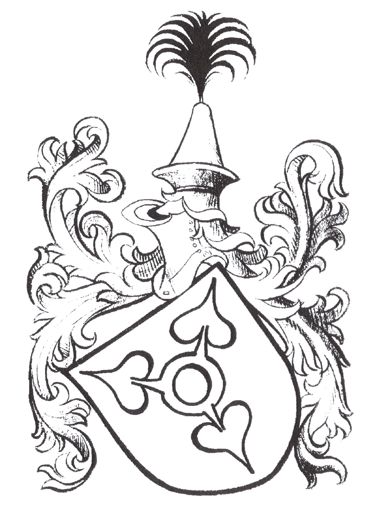 Das Wappen der Wittelsbeck nach dem Siegel des Berchtold von 1424: ein Ring, aus dem im Dreipass drei Seeblätter wachsen; auf dem Stechhelm ein breiter Stulphut, besteckt mit einem Hahnenfederbusch; Farben unbekannt